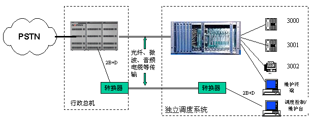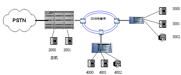 適用范圍:這種應用適用于對電話系統(tǒng)安全性要求嚴格的場合,如電力系統(tǒng)行政交換機與調(diào)度交換機就可以以上述方式實現(xiàn)備份,從而實現(xiàn)行政或調(diào)度交換機某一臺不能工作時,依然可以通過備份系統(tǒng)打電話。