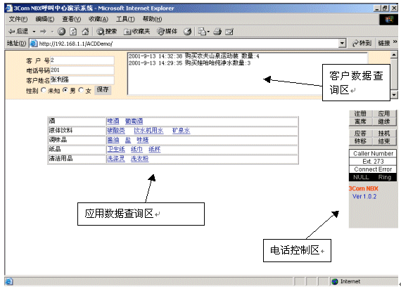 "無聲"一直是企業(yè)電子商務(wù)的最大遺憾,因?yàn)?無聲",許多消費(fèi)者卻步了。怎樣把語音和Web在網(wǎng)絡(luò)上結(jié)合起來?NBX呼叫中心的語音數(shù)據(jù)兩網(wǎng)合一的結(jié)構(gòu),可以方便地讓W(xué)EB訪問用戶與呼叫中心坐席進(jìn)行語音交流。消費(fèi)者在使用Internet瀏覽時(shí),點(diǎn)擊呼叫按鈕,就可以通過麥克風(fēng)與客服代表通話。并且網(wǎng)上來電與普通來電一樣,經(jīng)過交換及排隊(duì)處理,同樣支持來電資料彈出。對(duì)客戶來說,只需要一臺(tái)接入Internet的多媒體電腦和免費(fèi)的客戶端軟件就可實(shí)現(xiàn)Web瀏覽和交談功能。這個(gè)功能不僅可以讓客戶獲得更好的售后服務(wù),在售前服務(wù)中也可發(fā)揮巨大效用。消費(fèi)者在購(gòu)買之前必須對(duì)產(chǎn)品有充分了解,在網(wǎng)站瀏覽中通過與客戶代表的交流增進(jìn)產(chǎn)品了解,刺激其購(gòu)買欲望。