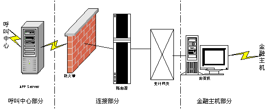呼叫中心跟金融主機(jī)房的連接如下圖所示。