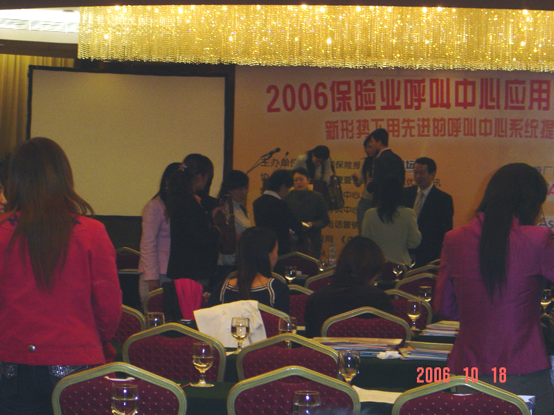 。。2006年10月18日,2006保險(xiǎn)業(yè)呼叫中心應(yīng)用暨電話營(yíng)銷(xiāo)高峰研討會(huì)在北京天鴻科園大酒店隆重召開(kāi),以下是會(huì)議現(xiàn)場(chǎng)的相關(guān)圖片報(bào)道: