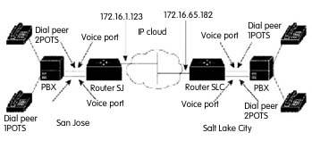 連接。每個(gè)辦公室有一個(gè)PBX內(nèi)部電話網(wǎng)絡(luò),通過(guò)一個(gè)E&M接口連接到語(yǔ)音網(wǎng)絡(luò)。 鹽湖城和San Jose 辦公室都使用E&M