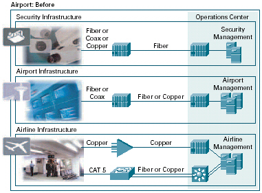 。。由于預算不斷波動、物理空間有限,且已對網絡基礎設施進行了投資,當前的機場和航空公司無法承受巨大的商業(yè)風險。而由分立IT網絡元素組成的基礎設施極大地限制了改進的能力,帶來了功能化信息孤井、重復應用、專用航空公司系統(tǒng)、不同的網絡協(xié)議,以及昂貴、復雜的網絡設計和部署。