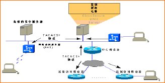 (TACAS:Terminal Access Controller Access Control System--終端訪問控制系統(tǒng))有了這樣的服務(wù)器以后,連接在這個網(wǎng)絡(luò)的所有用戶,不管它需要以什么樣的方式訪問網(wǎng)絡(luò)設(shè)備,都必須通過服務(wù)器的安全性監(jiān)測。由于服務(wù)器上可以運行功能很強的安全性方面的軟件,可以完全滿足BOSS系統(tǒng)的安全需求。在路由器、撥號訪問服務(wù)器和安全服務(wù)器之間傳送的可以是經(jīng)過加密的有關(guān)網(wǎng)絡(luò)安全協(xié)議的數(shù)據(jù)流。
