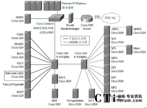 WAN。每所學(xué)校都在布線室中安 裝了一臺自己的 Cisco Catalyst 3524 或者 2924 交換機(jī),并為每個桌面提供了 10Mbps