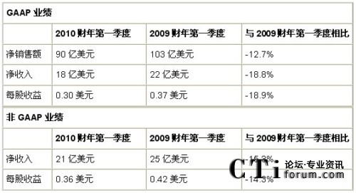 CTI論壇(ctiforum)11月5日消息:全球領(lǐng)先的致力于改進(jìn)人們聯(lián)絡(luò)、溝通和協(xié)作方式的互聯(lián)網(wǎng)解決方案提供商思科今天發(fā)布了截止到2009年10月24日的第一季度業(yè)績(jī)報(bào)告。報(bào)告顯示,第一季度凈銷(xiāo)售額為90億美元,根據(jù)通用會(huì)計(jì)準(zhǔn)則(GAAP)計(jì)算的凈收入為18億美元,合每股0.30美元,非GAAP凈收入為21億美元,合每股0.36美元。