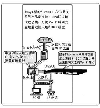 Avaya公司計(jì)劃在近期推出幾款網(wǎng)關(guān)設(shè)備,以支持IP電話呼叫能安全地通過防火墻。其中,包括SG5/5X和MG200系列的firewall/VPN設(shè)備。這些新產(chǎn)品的一個(gè)重要特性就是對H.323 VoIP協(xié)議的支持,這樣可使VoIP安全、方便地部署在遠(yuǎn)程節(jié)點(diǎn)上,而且新的設(shè)備也可與現(xiàn)有的firewall/VPN設(shè)備協(xié)同工作,或用來建立某個(gè)安全基礎(chǔ)設(shè)施。同時(shí),H.323代理功能可使Avaya的IP電信呼叫置于Internet上而不受某個(gè)公共防火墻的干擾。