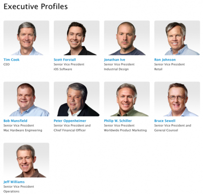 導(dǎo)語(yǔ):《福布斯》雜志撰稿人維多利亞·平欽(Victoria Pynchon)周日撰文指出,史蒂夫·喬布斯(Steve Jobs)辭職后,給蘋(píng)果留下了一個(gè)完全由男性構(gòu)成的管理團(tuán)隊(duì),雖然他們個(gè)個(gè)才華橫溢,對(duì)公司極度忠誠(chéng),但缺乏女性的支持使這個(gè)團(tuán)隊(duì)的未來(lái)蒙上一層陰影。