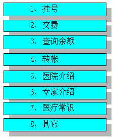 對于主流程里面的醫(yī)院介紹、科室介紹和專家介紹,只需要用戶按鍵選擇即可。而且對用戶不加限制,任何用戶(包括沒有就診卡的用戶)也可以查詢。