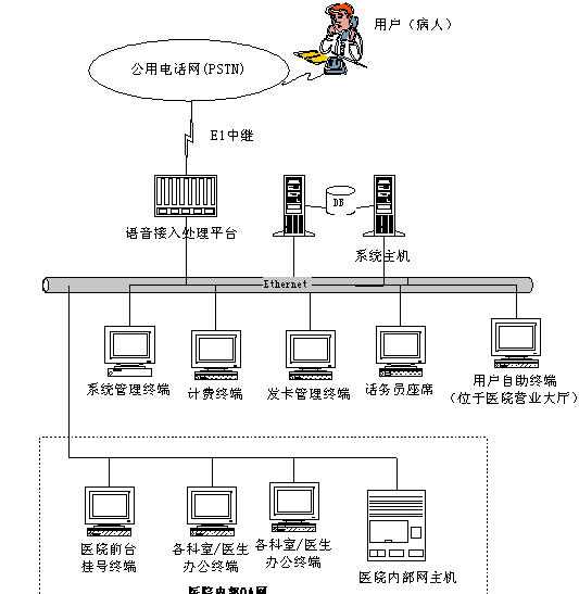 3、 系統(tǒng)需要跟醫(yī)院的人工掛號終端和自助掛號終端聯(lián)網(wǎng),電話掛號、自助掛號和醫(yī)院人工掛號三者必須結(jié)合起來,進行統(tǒng)一排隊。其中自助掛號和人工掛號的排隊時間以手工輸入電腦的時間為準,電話掛號以電話輸入時間為準。