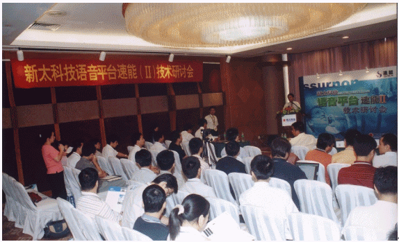 7月23日,新太科技在廣州花園酒店舉行"語音平臺速能II技術(shù)研討會"。新太科技執(zhí)行總裁梁平、副總裁何健明,開發(fā)中心副經(jīng)理張少文,營銷中心國際業(yè)務部副總經(jīng)理馬任遠、產(chǎn)品經(jīng)理黃偉,新太科技合作伙伴Intel公司通訊產(chǎn)品業(yè)務部戰(zhàn)略客戶經(jīng)理林競宇,新太語音平臺速能產(chǎn)品核心代理商--廣州納特威科技公司總經(jīng)理黃淡輝,渠道總代理商--深圳意科特實業(yè)有限公司總經(jīng)理李面換等到會并作主題發(fā)言!吨袊嬎銠C報》、《計算機世界》、《SP計算機產(chǎn)品與流通》、IT168共四家專業(yè)媒體記者到會采訪。