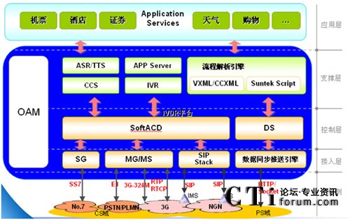 流程解析引擎支持VXML及SUNTEK Script流程語言,通過SCE集成開發(fā)環(huán)境,可以方便地定制開發(fā)動態(tài)語音流程。除實(shí)現(xiàn)IVR功能外,還可以通過數(shù)據(jù)鏈路同步向用戶的終端推送數(shù)據(jù),并通過終端軟件的解析后展現(xiàn)在客戶面前。