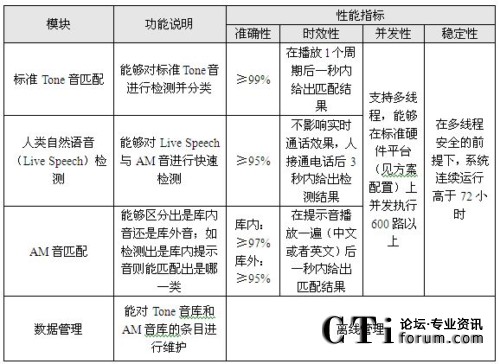 圖中,Tone音匹配采用模式匹配方法,可以實(shí)現(xiàn)對(duì)振鈴音,忙音,空號(hào),不可達(dá)音等100多種標(biāo)準(zhǔn)提示音的識(shí)別。AM(Answering Machine)音匹配主要負(fù)責(zé)識(shí)別傳真機(jī)、自動(dòng)答錄機(jī)等機(jī)器語(yǔ)音,同樣采用模式匹配方法,將收到的語(yǔ)音與標(biāo)準(zhǔn)樣本庫(kù)進(jìn)行比對(duì)。人類自然語(yǔ)音檢測(cè)的功能主要通過人真實(shí)聲音的檢測(cè),來判斷是否需要進(jìn)行語(yǔ)音匹配。
