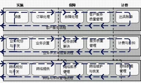 電信運(yùn)營(yíng)乃至整個(gè)電信企業(yè)的經(jīng)營(yíng)管理也越來(lái)越倚重于電信網(wǎng)絡(luò)支持系統(tǒng)。以最短的時(shí)間向用戶提供最新的業(yè)務(wù),對(duì)同一用戶提供豐富的消費(fèi)方式的選擇,對(duì)不同用戶進(jìn)行交叉銷(xiāo)售,乃至對(duì)價(jià)值鏈中的合作伙伴進(jìn)行有效管理,這些都要求業(yè)務(wù)管理與網(wǎng)絡(luò)體系的高度整合。西方的現(xiàn)代電信服務(wù)企業(yè),都紛紛以操作支持系統(tǒng)(OSS)的要求來(lái)規(guī)范自身企業(yè)的運(yùn)營(yíng),努力做到企業(yè)的每個(gè)業(yè)務(wù)操作都能在電信運(yùn)營(yíng)導(dǎo)圖(TOM)中找到相應(yīng)的位置,而每個(gè)步驟和其他步驟的銜接都符合TOM的規(guī)范要求。近年提出的內(nèi)容更加廣泛的擴(kuò)展電信運(yùn)營(yíng)導(dǎo)圖(eTOM)更是規(guī)范了電信業(yè)務(wù)管理的所有重要方面。