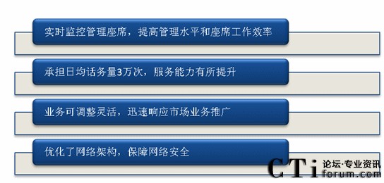 北京農(nóng)村商業(yè)銀行呼叫中心項目負責(zé)人在接受采訪時表示,從銀行的運營管理角度而言,通過部署IPCC解決方案,實現(xiàn)了以下改變:一、實時監(jiān)控管理座席,提高了管理水平和座席工作效率;二、系統(tǒng)日承擔(dān)話務(wù)量3萬次,服務(wù)能力有所提升;三、可以靈活調(diào)整業(yè)務(wù),迅速相應(yīng)市場業(yè)務(wù)推廣;四、優(yōu)化了網(wǎng)絡(luò)架構(gòu),保障了網(wǎng)絡(luò)安全。