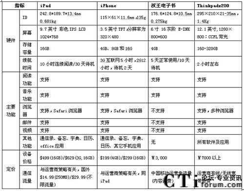 1、與手機(jī)相比,確如產(chǎn)品的定位—在手機(jī)與電腦之間,因此在硬件上及功能上,iPad就如升級(jí)版的iPhone,具有比手機(jī)更大的屏幕和硬盤(pán),更快處理速度,在視頻、郵件等業(yè)務(wù)應(yīng)用上基本同電腦相似。且可以和運(yùn)營(yíng)商合作,內(nèi)置SIM卡,通過(guò)SIM來(lái)與運(yùn)營(yíng)商合作,使用運(yùn)營(yíng)商網(wǎng)絡(luò)進(jìn)行各類(lèi)業(yè)務(wù)體驗(yàn);也可以通過(guò)WLAN方式進(jìn)行互聯(lián)網(wǎng)體驗(yàn)。缺點(diǎn)就是體積相對(duì)龐大,且重量較重,不適于長(zhǎng)期手持。