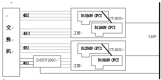 由東進(jìn)數(shù)字中繼卡D1280NC搭建基于CompactPCI架構(gòu)的語(yǔ)音系統(tǒng)完成。單機(jī)可同時(shí)提供1920通道的語(yǔ)音處理能力,系統(tǒng)提供高達(dá)4096路的無阻塞直接交換。