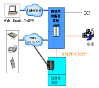CTI技術(shù)是計算機電信集成技術(shù),它的信令網(wǎng)關(guān)化、媒體處理網(wǎng)關(guān)化、標準接口、可編程等特點非常適合移動內(nèi)容服務(wù)和聲訊服務(wù)的需求。因此,在移動內(nèi)容服務(wù)規(guī)范中,主要技術(shù)依據(jù)就是CTI技術(shù)和SMS技術(shù)。
