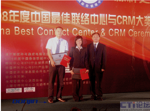 “2008中國最佳聯(lián)絡(luò)中心及CRM評獎(jiǎng)”是由中國唯一的國家級(jí)呼叫中心與BPO行業(yè)協(xié)會(huì)--中國呼叫中心與BPO產(chǎn)業(yè)聯(lián)盟(CNCBA) 與呼叫中心與BPO行業(yè)資訊網(wǎng)(51 Callcenter)、中國軟件與服務(wù)外包產(chǎn)業(yè)聯(lián)盟共同主辦,代表中國唯一接軌全球最佳聯(lián)絡(luò)中心評選標(biāo)準(zhǔn),是工業(yè)和信息化部唯一認(rèn)可的行業(yè)獎(jiǎng)項(xiàng),為真正意義上的中國聯(lián)絡(luò)中心“奧斯卡”獎(jiǎng)。參選對象為中國行政區(qū)域內(nèi)的各類政府、企事業(yè)單位聯(lián)絡(luò)中心、客戶服務(wù)中心、客戶支持中心、客戶聯(lián)絡(luò)中心、以及同類含義的職能部門及其從業(yè)人員等。因此,無論是從獎(jiǎng)項(xiàng)的規(guī)格還是入選的圍度都是非常高規(guī)格與嚴(yán)格的。東進(jìn)技術(shù)的多媒體呼叫中心系統(tǒng)平臺(tái)解決方案在此次評選中經(jīng)過了用戶、業(yè)界同仁與專家學(xué)者的一致認(rèn)可,最終獲得了這一殊榮。