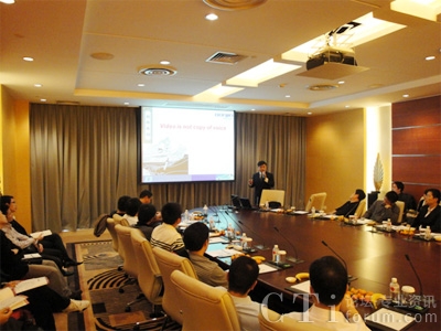 東進(jìn)Keygoe產(chǎn)品經(jīng)理劉駿先生是本次活動(dòng)當(dāng)之無愧的頂梁柱,活躍在沙龍活動(dòng)的每一站。他對(duì)3G通信市場(chǎng)進(jìn)行了深入淺出的分析,借鑒國(guó)外成功的案例經(jīng)驗(yàn),并對(duì)中國(guó)可能的熱點(diǎn)業(yè)務(wù)做出東進(jìn)的預(yù)測(cè),即在將來,手機(jī)上網(wǎng),視頻點(diǎn)播,定位服務(wù)以及下載服務(wù)可能成為熱點(diǎn),同時(shí),重點(diǎn)列舉和分析了東進(jìn)在3G業(yè)務(wù)應(yīng)用的探索成果和經(jīng)驗(yàn)。會(huì)中對(duì)將視頻功能嵌入到“3G總機(jī)一號(hào)通”這類應(yīng)用的描述,非常引人入勝,尤其讓人注意的是,他認(rèn)為3G視頻在將來不會(huì)作為一個(gè)單獨(dú)的業(yè)務(wù)而存在,而公眾業(yè)務(wù)并沒有如預(yù)期般成為主流。此外,以國(guó)慶60周年閱兵空中梯隊(duì)現(xiàn)場(chǎng)指揮調(diào)度系統(tǒng)應(yīng)用為例,對(duì)行業(yè)呼叫中心的成功案例分享以及重點(diǎn)行業(yè)的前景預(yù)測(cè)分析也給客戶留下很深刻的印象。劉駿表示,對(duì)于正進(jìn)入新格局的市場(chǎng),多媒體交換機(jī)正愈加凸顯其多媒體處理性能,并加速與其他通信系統(tǒng)的融合,而理解客戶的需求,成為重中之重。