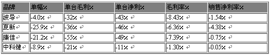手機(jī)企業(yè)對廣告促銷等投入的依賴越來越大。以夏新為例,上半年毛利大約12億元,凈利3.68億元,營業(yè)與管理費(fèi)用8.38億元。國產(chǎn)手機(jī)對推廣費(fèi)用的依賴越來越明顯,銷售單價(jià)下降,毛利在縮小,銷售成本快速增長。