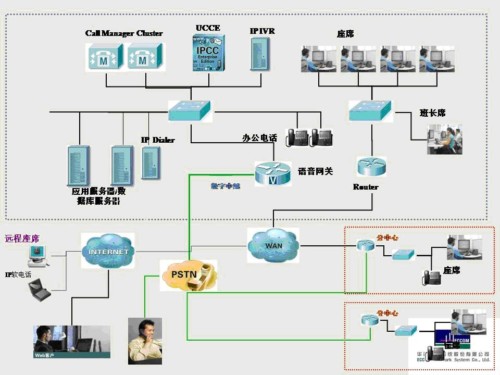 IP聯絡中心(IPCC)是Unified Communication解決方案的一個組成部分,在Unified Communication Manager系統的基礎上,通過Unified Contact Center Enterprise(UCCE)或Unified Contact Center Express(UCCX)提供完整的呼叫中心功能,包括靈活定制的路由分配策略,豐富的座席、班長席桌面應用,強大的預測與預覽式外撥管理工具,完善的基于瀏覽器的報表工具及模板和統一的系統管理工具等。
