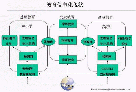 目前國內(nèi)教育界主要分為高等教育、公眾教育、基礎(chǔ)教育三大塊,三個部分的建設(shè)應(yīng)用情況不盡相同。同方網(wǎng)絡(luò)對于每一個部分都提出了有針對性的解決方案,為加速教育界信息化助一臂之力。
