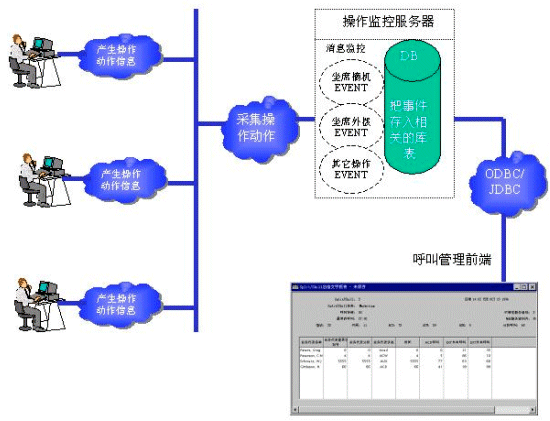 這種方案的主要優(yōu)點(diǎn)是信息非?焖俸蜏(zhǔn)確,由于消息來(lái)源只和坐席的操作動(dòng)作有關(guān),并且中間沒(méi)有其它中轉(zhuǎn)系統(tǒng),所以不會(huì)出現(xiàn)坐席已經(jīng)掛機(jī)2秒后,管理系統(tǒng)還顯示坐席通話(huà)的情況。