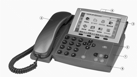InfoPhone與普通電話機(jī)的最大區(qū)別在于:她擁有增強(qiáng)型的操作面板(圖中標(biāo)識(shí)2),超清晰的液晶顯示螢?zāi)? 圖中標(biāo)識(shí)3),手感舒適的點(diǎn)觸筆(圖中標(biāo)識(shí)5),實(shí)用型的狀態(tài)指示燈(圖中標(biāo)識(shí)6)。通過(guò)點(diǎn)觸筆和操作面板上的按鍵點(diǎn)選和控制液晶顯示螢?zāi)簧系倪x項(xiàng),完成相應(yīng)的操作。