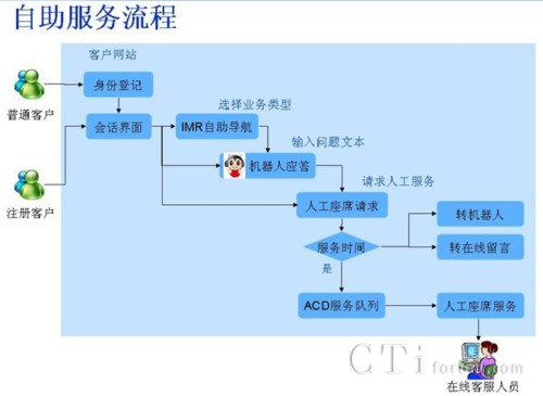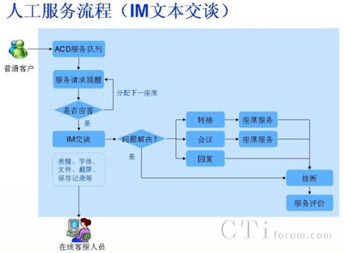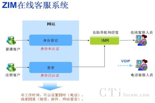 客戶從網(wǎng)站設定的多個入口訪問企業(yè)在線客服,系統(tǒng)同時進行客戶身份認證,客戶可以選擇訪客或注冊用戶身份訪問在線客服系統(tǒng)(如銀行的網(wǎng)銀客戶不需要客戶輸入身份直接進入系統(tǒng)),客戶以不同的身份訪問在線客服系統(tǒng),關(guān)系到在轉(zhuǎn)人工座席時ACD的路由策略、技能組座席服務定位、客戶既往服務信息的完整和個性化服務的體現(xiàn)。