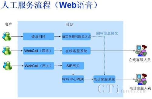 客戶通過Web方式發(fā)起呼叫,與人工座席進行語音交流。