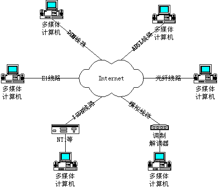 IBM PC及兼容機(jī),Pentium 200 CPU、 64M RAM配置,安裝Windows 98/Windows NT/Windos 2000其中之一的操作系統(tǒng),配置全雙工的聲卡,并配備了音響、麥克風(fēng)。