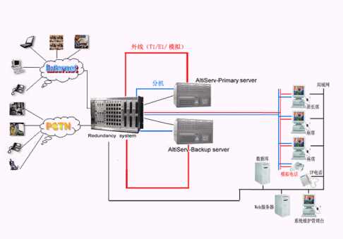 奧迪堅全球領先的CTI平臺的供應商和IP分布式呼叫中心的領導者,在技術上不斷創(chuàng)新,對產(chǎn)品精益求精,尤其體現(xiàn)在對系統(tǒng)的運行安全性的要求上,為了防止電信接入設備或者企業(yè)網(wǎng)絡出現(xiàn)故障而造成的呼叫中心服務中斷,奧迪堅呼叫中心系統(tǒng)提供安全保護冗余切換系統(tǒng),來保障呼叫中心在意外情況下的正常工作,該安全冗余切換系統(tǒng)通過對電源、T1/E1、模擬trunk、分機座席、以及各種網(wǎng)絡鏈路串口等備份切換來實現(xiàn)可靠的運行。除此之外,奧迪堅系統(tǒng)本身也提供強大的安全保障,由于采用先進IP內核一體化設計,集傳統(tǒng)PBX、CTI服務器、IVR、ACD、Recording、FAX等眾多設備于一體,這樣有效的避免了因為外掛設備過多以及設備供應商的不同而存在的兼容性的問題,從而降低了給呼叫中心系統(tǒng)帶來的的不穩(wěn)定的安全隱患。在系統(tǒng)之外依靠安全保護冗余切換系統(tǒng),可以實現(xiàn)外線、分機、以及各種鏈路接口的雙倍安全運行。當啟用了冗余功能,并且已經(jīng)激活了主服務器,系統(tǒng)會將所有的許可協(xié)議,配置,語音信箱文件以及客戶短語等復制到次服務器上。