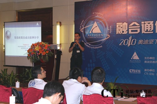 CTI論壇(ctiforum)9月10日消息(記者 楊毅):2010年9月9日奧迪堅在廣州市嘉鴻華美達廣場酒店舉辦的“下一代融合通信平臺華南研討會” 圓滿落下帷幕。本次會議以 “融合通信” 為主題,將最新的由“IPT、IPCC、UC和Mobility”四個部分組成的融合通信技術完美呈現(xiàn)在嘉賓眼前,吸引了業(yè)界眾多知名廠商和媒體,并得到了奧迪堅在各個行業(yè)的新老客戶的積極響應和參與。通過奧迪堅的精彩主題演講、現(xiàn)場的情景秀表演和眾多案例分享等多種形式,與合作伙伴及嘉賓共同探討融合通信技術該如何發(fā)展、解讀渠道新政策、同時更加深入了解奧迪堅產品,提高合作伙伴在市場上的競爭力。CTI論壇(www.qcadult.com)獨家承辦此次會議,并進行全程報道。