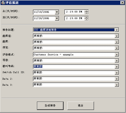 在質(zhì)量管理系統(tǒng)中,用戶可以通過評(píng)估報(bào)表生成器,定義客戶化的評(píng)估報(bào)表。用戶可以針對(duì)座席的表現(xiàn)生成文字和圖形化的報(bào)表。通過這些報(bào)表,可以了解需要改善和增強(qiáng)的座席培訓(xùn)內(nèi)容。