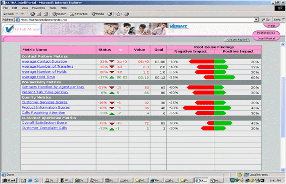 IntelliSeek相對(duì)評(píng)估報(bào)表設(shè)計(jì)器的優(yōu)勢(shì)包括分析座席業(yè)績與設(shè)定目標(biāo)之間的差距,更豐富的報(bào)表表現(xiàn)形式(積分卡、圖表、文本報(bào)表)。