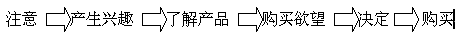 另外在其它的銷售渠道上,如電視、廣播、報(bào)紙等,他們對(duì)市場(chǎng)目標(biāo)的準(zhǔn)確度都是不高的,因?yàn)檫@樣的原因,也無(wú)法對(duì)目標(biāo)市場(chǎng)作掌控和測(cè)試,雖然他們可以很快速的擴(kuò)展市場(chǎng),對(duì)市場(chǎng)產(chǎn)生很大的響應(yīng)力,但如果沒(méi)有很好的市場(chǎng)營(yíng)銷與品牌整體性和長(zhǎng)期性規(guī)劃,也很快的會(huì)變成曇花一現(xiàn),歷史中的記憶,這些渠道的成本也是最高的,所以不是所有的企業(yè)都能一體適用的,尤其是中小型企業(yè)是無(wú)法長(zhǎng)期負(fù)擔(dān)的。誠(chéng)如在之前的文章里面分析所講的,最好的銷售效果是一拉一推的力量,用多媒體感官性及理性的獲取消費(fèi)者的注意力,再配合快速效能的主動(dòng)銷售,往往能將營(yíng)銷的效果提升到最高的層面。將到這兒,就不得不順帶提到消費(fèi)者購(gòu)買的行為模式。我們將消費(fèi)者對(duì)購(gòu)買的心理和行為分為幾個(gè)階段: