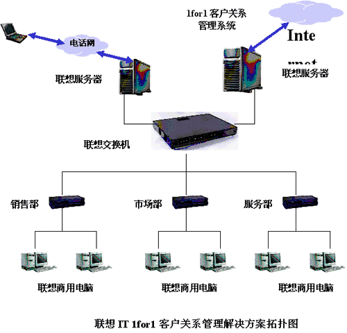 。。其實(shí)早在1998年,公司就開始了企業(yè)信息化管理的嘗試。公司建設(shè)了自己的局域網(wǎng),并開發(fā)出了專門的軟件系統(tǒng)。所有的客戶信息都要求錄入到這套系統(tǒng)中,銷售人員的工作記錄和銷售業(yè)績(jī)也要在系統(tǒng)中進(jìn)行登記。只是這套系統(tǒng)的基礎(chǔ)數(shù)據(jù)還是以Word、Excel文檔的形式分別存在,且中間的數(shù)據(jù)缺乏統(tǒng)一接口,無(wú)法動(dòng)態(tài)地反映公司整體的運(yùn)營(yíng)情況,很快就無(wú)法適應(yīng)公司業(yè)務(wù)發(fā)展的需要。在這種情況下,公司決定引進(jìn)規(guī)范的客戶關(guān)系管理系統(tǒng)。經(jīng)過多方比較之后,公司選擇了聯(lián)想的IT 1for1客戶關(guān)系管理解決方案。