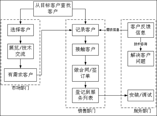 公司從很早就認(rèn)識(shí)到經(jīng)營(yíng)中存在的這些問題,一直在尋找解決的方法和途徑。我們逐漸認(rèn)識(shí)到,公司經(jīng)營(yíng)亟待解決的問題就是如何高效地處理客戶信息、有效地進(jìn)行客戶關(guān)系的管理,這是影響到公司能否獲得更大發(fā)展的關(guān)鍵。因?yàn)樵诠緞倓偲鸩綍r(shí),業(yè)務(wù)人員面對(duì)的是很少的客戶群,他們對(duì)每個(gè)客戶的具體情況非常熟悉,能夠根據(jù)每個(gè)客戶的不同需求特點(diǎn)提供相應(yīng)的產(chǎn)品和服務(wù)。而公司的管理人員面對(duì)的也是很少的業(yè)務(wù)人員,他們可以清楚地掌握每個(gè)業(yè)務(wù)人員的工作情況,并有針對(duì)性的加以監(jiān)督管理。公司的業(yè)務(wù)部門設(shè)置相對(duì)簡(jiǎn)單,彼此的溝通和配合也比較容易進(jìn)行。這時(shí)候幾乎不存在客戶的管理問題。但當(dāng)公司的業(yè)務(wù)成倍增長(zhǎng)后,業(yè)務(wù)人員和客戶的數(shù)量都空前膨脹,這時(shí)候簡(jiǎn)單的管理手段就承擔(dān)不了如此沉重的管理任務(wù),公司的經(jīng)營(yíng)就會(huì)出現(xiàn)混亂。突出的表現(xiàn)就是客戶、業(yè)務(wù)人員失控,公司的業(yè)務(wù)拓展陷入無(wú)序狀態(tài),失去繼續(xù)增長(zhǎng)的動(dòng)力。在這種情況下,要使公司的經(jīng)營(yíng)走出泥潭,必須要引入的就是先進(jìn)的客戶關(guān)系管理的觀念和手段。