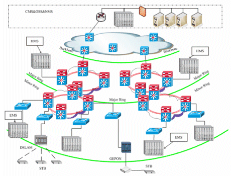 奔流(RollingStream)系統(tǒng)可以支持百萬級(jí)別的用戶規(guī)模,支持3級(jí)和多級(jí)部署架構(gòu)。包括中心節(jié)點(diǎn)(CMS)、區(qū)域匯聚節(jié)點(diǎn)(HMS)以及邊緣服務(wù)節(jié)點(diǎn)(EMS)。奔流(RollingStream)系統(tǒng)對于寬帶IP網(wǎng)絡(luò)的容忍度是很高的,可以支持各種網(wǎng)絡(luò)承載形式,也可支持各種接入方式。如LAN接入、DSLAM接入、GEPON接入。對于IPTV系統(tǒng),可建設(shè)專網(wǎng),CMS和HMS、EMS直接相連,也可以旁掛在城域網(wǎng)上。另外,無論P(yáng)PPoE還是DHCP上網(wǎng)方式都可以支持。