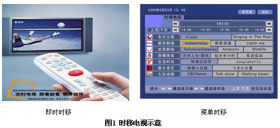 即時(shí)時(shí)移指用戶在觀看直播電視的同時(shí),支持暫停、快退、快進(jìn)、定位、切換、狀態(tài)顯示、時(shí)間顯示等操作。使用戶不再受節(jié)目播出時(shí)間的限制,而且可以直接挑選自己喜歡觀看的節(jié)目,跳過(guò)不感興趣的節(jié)目。通過(guò)時(shí)移電視(Time-shifted