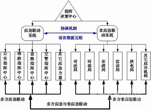 能夠?qū)崿F(xiàn)應急機構(gòu)與非應急部門之間的橫向聯(lián)動,即所謂“大聯(lián)動”。對于有些復雜的事件,僅由應急機構(gòu)無法處理,僅由非應急機構(gòu)也無法處理,需要應急機構(gòu)和非應急機構(gòu)的同時參與、相互協(xié)調(diào)才能處理。“應急與非應急一體化聯(lián)動”機制就是針對這種情況的有效解決方案。