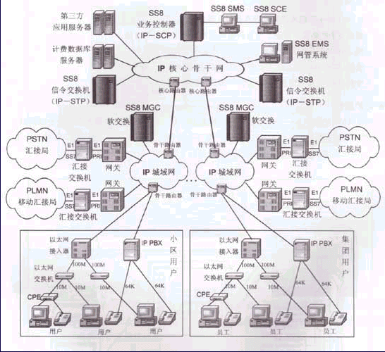 如同七號(hào)信令系統(tǒng)(SS7)在PSTN中所起到的作用一樣,SS8提供了面向Internet以及集團(tuán)單位內(nèi)部跨地域的Intronet的通信信令與解決方案。如廣電、銀行、公檢法、工商、稅務(wù)等跨地域性的集團(tuán)單位內(nèi)部計(jì)算機(jī)網(wǎng)絡(luò)或租賃某些骨干網(wǎng)絡(luò)所覆蓋范圍內(nèi)的語(yǔ)音通信服務(wù)。從而極大的降低集團(tuán)單位業(yè)務(wù)通信的成本。以下將對(duì)SS8系統(tǒng)產(chǎn)品的主要功能以及它在廣電網(wǎng)絡(luò)中應(yīng)用的益處和推廣應(yīng)用的建議說(shuō)明如下: