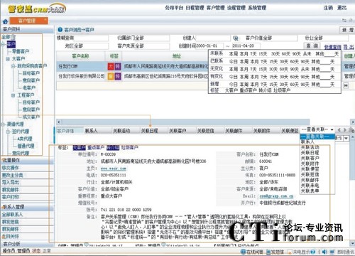 管理好客戶(hù),做好客戶(hù)資料的詳細(xì)管理;管理企業(yè)各部門(mén)與客戶(hù)交往的所有日程活動(dòng)。讓查閱者一目了然。并可以對(duì)客戶(hù)進(jìn)行精準(zhǔn)營(yíng)銷(xiāo),如群發(fā)短信、群發(fā)傳真、群發(fā)郵件等。