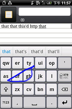 圖:Nuance T9 Trace非連續(xù)重復(fù)字母輸入截圖
