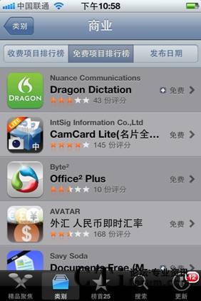 CTI論壇(ctiforum)3月10日消息(記者 潘婷婷):記者日前發(fā)現(xiàn), 聲龍聽寫(Dragon Dictation) 在 3月8日進(jìn)駐中國iTunes App Store的首日便迅速受到了眾多蘋果粉絲的青睞,當(dāng)天立即一舉躍居免費iPhone商業(yè)類應(yīng)用軟件的排行榜榜首。