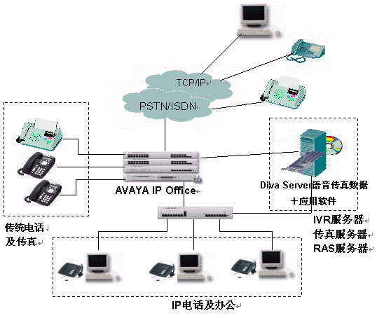 針對(duì)現(xiàn)代企業(yè)辦公通信的特點(diǎn)和要求,Avaya與Eicon經(jīng)過(guò)嚴(yán)格的產(chǎn)品互操作測(cè)試,及應(yīng)用調(diào)試共同推出了企業(yè)一體化辦公平臺(tái)解決方案,該解決方案整合了兩家公司的交換機(jī)、語(yǔ)音傳真板卡的各自?xún)?yōu)勢(shì),既可以應(yīng)用于傳統(tǒng)的網(wǎng)絡(luò)環(huán)境,又能應(yīng)用于純IP的通信環(huán)境,將不同的應(yīng)用技術(shù)和網(wǎng)絡(luò)結(jié)合起來(lái),做到真正的辦公一體化。