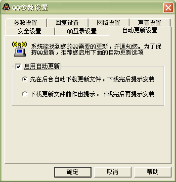 在QQ 2003中新增加了一項(xiàng)自動(dòng)更新的功能,這樣在騰訊推出新版QQ之后,可以自行進(jìn)行下載和安裝,省去用戶麻煩。