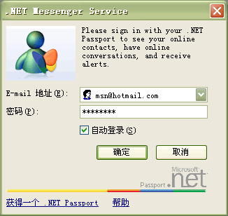 Messenger 6.0依然采用基于.net Passport的電子郵件帳戶進(jìn)行登陸。