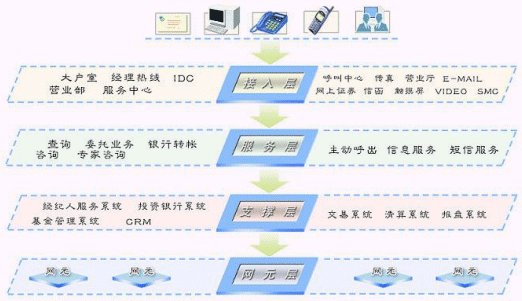 證券客戶服務(wù)系統(tǒng)面向用戶提供電話、傳真、網(wǎng)絡(luò)等方式的咨詢、查詢、委托、銀行轉(zhuǎn)帳、自動(dòng)業(yè)務(wù)等業(yè)務(wù)功能。系統(tǒng)以提供“個(gè)性化、社會(huì)化、信息化”服務(wù)為重要特征,具有“滿足未來業(yè)務(wù)發(fā)展需要”、“滿足實(shí)時(shí)處理”的能力。系統(tǒng)在設(shè)計(jì)、實(shí)現(xiàn)上,以具有先進(jìn)技術(shù)和高穩(wěn)定性的呼叫中心平臺為基礎(chǔ),竭力為證券業(yè)務(wù)運(yùn)營商建立一個(gè)強(qiáng)大、開放、靈活的業(yè)務(wù)服務(wù)系統(tǒng),更好地滿足證券用戶日益增長的各種新的服務(wù)需求,保持證券企業(yè)在市場競爭中的優(yōu)勢。