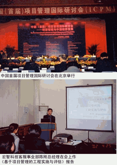 - 2002年4月24日-26日,由國家經(jīng)貿(mào)委、中國科學(xué)院、國家外國專家局、聯(lián)合國工業(yè)發(fā)展組織共同主辦的中國首屆項(xiàng)目管理國際研討會(huì)在北京舉行,來自30多個(gè)國家的800多名代表參加了此次大會(huì),宏智公司代表也應(yīng)邀出席了研討會(huì)。